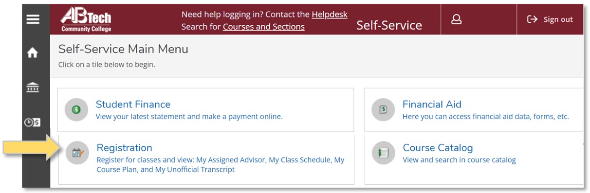 - Click on the "Registration" tile from the Self-Service Main Menu.